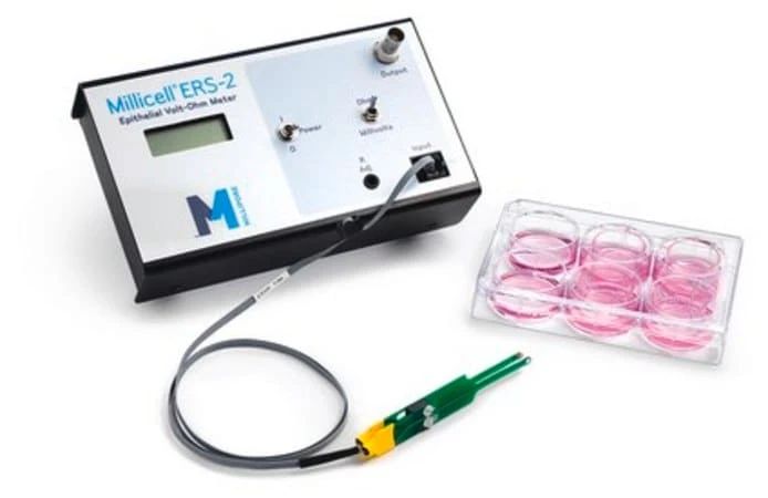 Millicell® ERS-2(电阻系统)能够可靠地测量培养基中上皮细胞的膜电位和电阻。该装置用来定性测量细胞单层的健康和定量测量细胞融合。每个电极尖上的银/氯化银(Ag/AgCl)小球用来测量电压。由于电极尺寸很小,因此您可以容易地测量微孔膜上生长的细胞的跨膜电压和电阻。