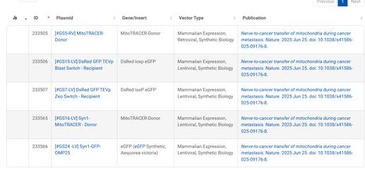 文章中用于构建MitoTRACER系统的所有质粒都已寄存到Addgene质粒库中,属于Simon Grelet实验室,🔗 获取链接:。