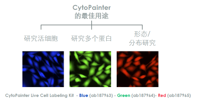 目前Abcam可以提供很多用于细胞亚结构的Cytopainter荧光染色试剂盒,常用的一些细胞器染色试剂盒汇总如下:
