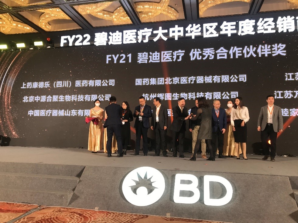 中源公司获颁“FY21 碧迪医疗优秀合作伙伴奖”