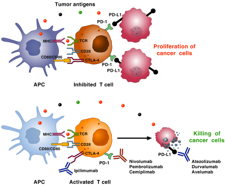 图一 免疫检查点抑制剂作用机理(Giusy Elia, et al, 2020)