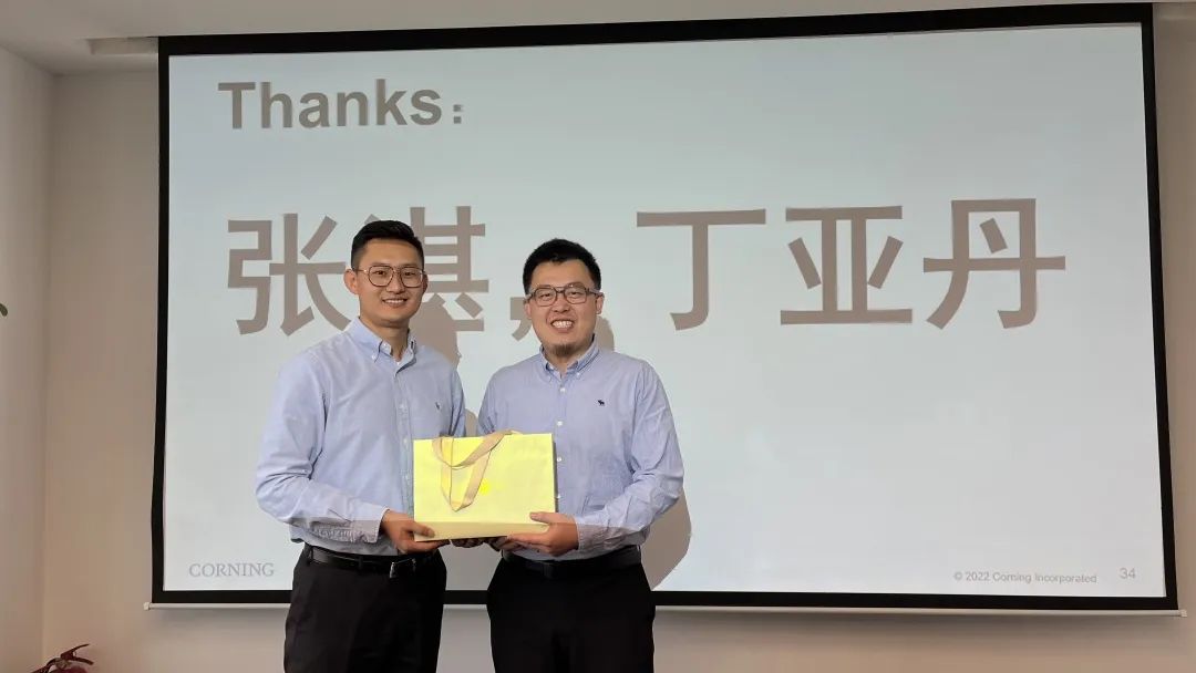 中源公司进出口二部张湛(右)获康宁公司业务突出奖