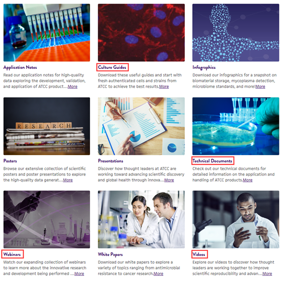 1)进入“Culture Guides”中心(//www.atcc.org/resources/culture-guides),可获取ATCC各类产品的培养指南;