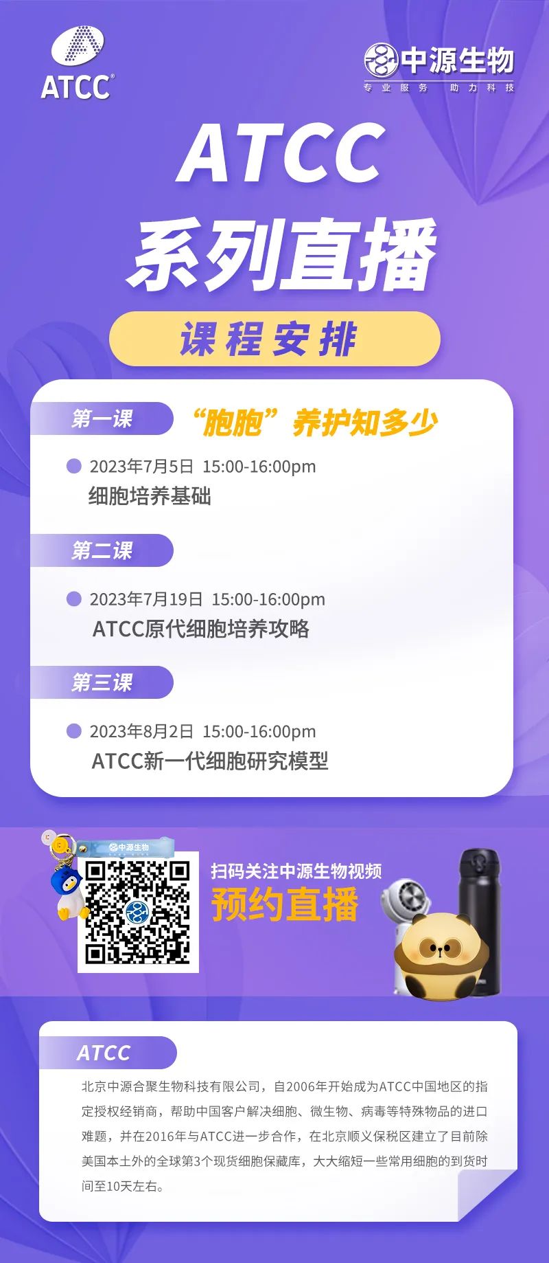 “胞胞”养护知多少——ATCC系列直播预约已开放!速来预约!