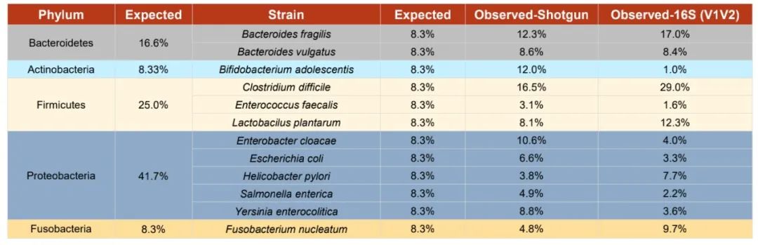 关于两种测序方法ATCC用肠道微生物菌株标准品(ATCC® MSA-2006™)做了以下比较。