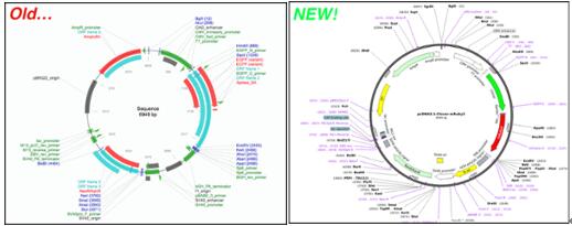 Three factors make our SnapGene powered plasmid maps far easier to navigate. These practical and effective changes will give you the ability to find the plasmid with the features you need quickly.