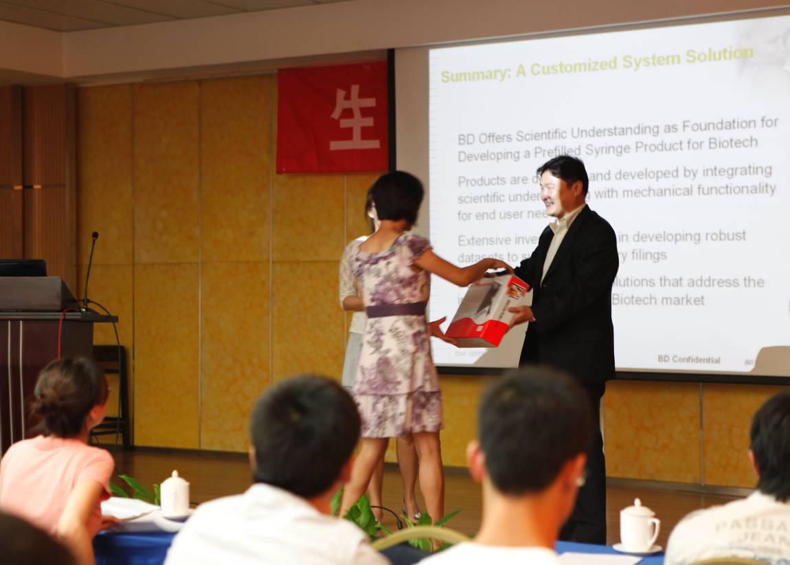 来自BD高级生物工艺部门的产品专家Geleick先生介绍了在生物制药迅猛发展的今天生物培养工艺部门面临的挑战以及BD公司如何提供高效高产的培养基优化平台及相关服务。