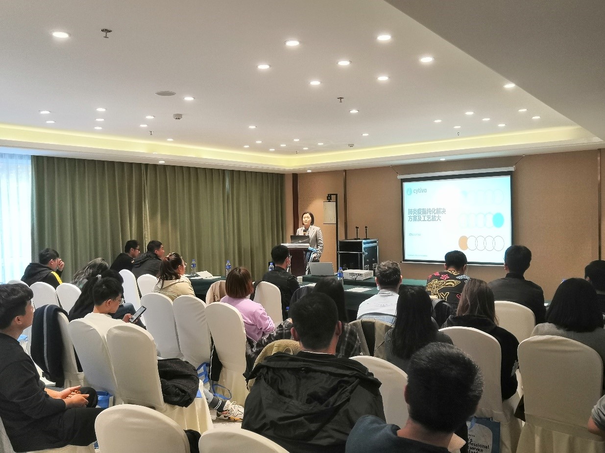 Cytiva工艺开发部GM刘静进行“细菌疫苗下游纯化工艺策略”的主题演讲