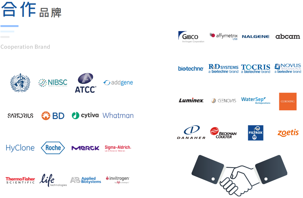 是多家国际权威机构(如WHO、ATCC、NIBSC、ECACC、DSMZ、HSBBR等)及著名国际生物技术公司指定的中国区进口服务商和产品供应商。